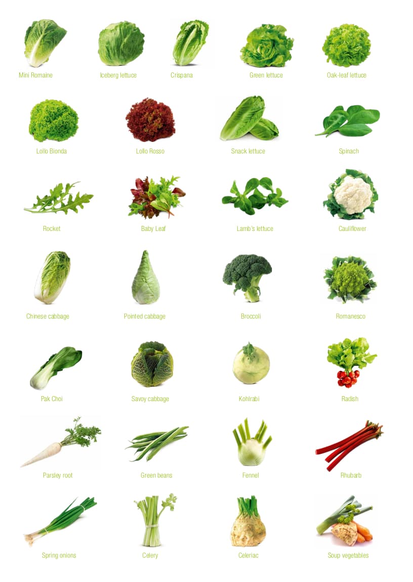 - Sałata głowiasta - Crispana; Eichenlaub; Lollo-Bionda; Lollo-Rosso; Mini-Romana; Sałata; Sałata do przekąsek; Sałata lodowa;