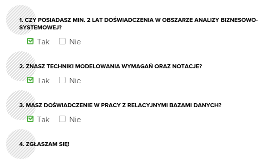 Twój zakres obowiązków: Pozyskiwanie wymagań biznesowych, w tym: organizowanie i prowadzenie warsztatów/spotkań z interesariuszami, Analizowanie potrzeb biznesowych i proponowanie optymalnych rozwiązań, Tworzenie specyfikacji wymagań biznesowych dla nowych funkcjonalności, Przygotowywanie...