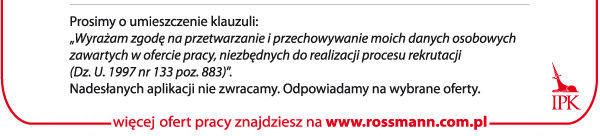 Firma ROSSMANN – międzynarodowa sieć handlowa, poszukuje osób na stanowisko: