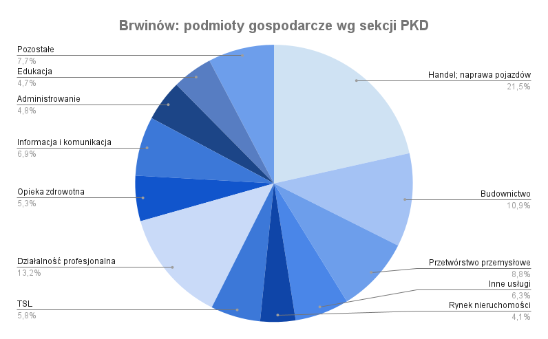 W Brwinowie działa łącznie 2435 podmiotów gospodarki narodowej (REGON, stan na koniec maja 2022 r.). Największymi z nich są: