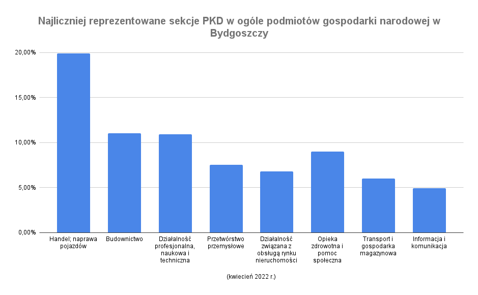 W województwie kujawsko-pomorskim i w samej Bydgoszczy można wskazać kilka dziedzin gospodarczych dominujących tutejsze rynki. Według danych pochodzących z rejestru REGON na terenie województwa działalność gospodarczą prowadzi ponad dwieście tysięcy jednostek. Największą liczbę posad w regionie generują przedsiębiorstwa działające w segmencie handlu, naprawy pojazdów samochodowych, budownictwa i przetwórstwa przemysłowego. Niemal połowa jednostek gospodarczych jest w podregionie bydgosko-toruńskim. W samej Bydgoszczy działa powyżej 45 tysięcy podmiotów gospodarki narodowej. Wśród ważnych branż wyróżnić można także branżę chemiczną i elektromaszynową. Co więcej, Bydgoszcz słynie między innymi z produkcji taboru kolejowego i tramwajowego. Jest jednym z głównych krajowych ośrodków branży informatycznej i usług dla biznesu Business Process Outcourcing. Te wszystkie dziedziny generują stałe bądź rosnące zapotrzebowanie na nowych pracowników. Wśród najbardziej znaczących firm z regionu wymienić możemy chociażby Grupę Pekabex, Grupę ZUE, BPO International, Control Process S.A. czy NES Global Talent.