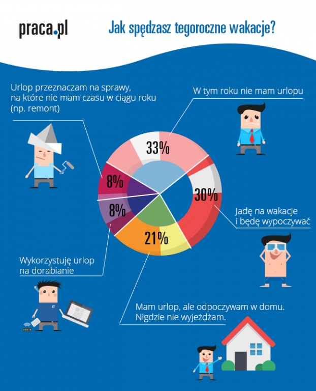 Jak Polacy spędzają tegoroczne wakacje? Wypoczywają? A może przeznaczają czas odpoczynku na prace remontowe bądź dodatkowe zarobkowanie? Z ankiety przeprowadzonej przez Praca.pl wśród użytkowników serwisu wynika, że tylko połowa Polaków w tym roku odpoczywa. Co robią pozostali?