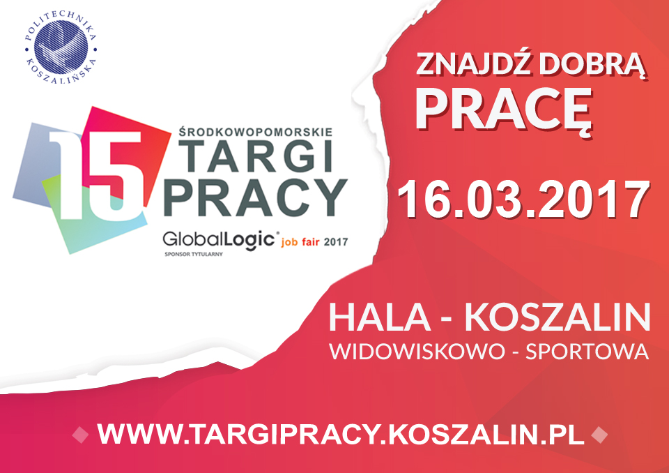 Biuro Karier Politechniki Koszalińskiej zaprasza na 15. Środkowopomorskie Targi Pracy GlobalLogic Job Fair 2017, które odbędą się 16.03.2017 r. w Hali Widowiskowo - Sportowej przy ul. Śniadeckich 4 w Koszalinie. Poprzednia edycja targów zgromadziła ponad 70 firm i instytucji rynku pracy oraz 3000 osób poszukujących zatrudnienia.