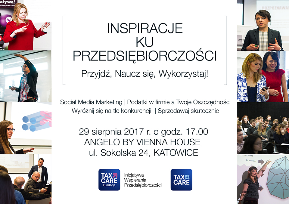 Według statystyk i badań GUS*, w Polsce jest zarejestrowanych ponad 3 mln działalności gospodarczych. W Centralnej Ewidencji i Informacji o Działalności Gospodarczej w przeciągu jednego tygodnia rejestruje się około 2500 nowych firm. To dowód, na to, że Polska rozwija się jako społeczeństwo przedsiębiorcze. Niemniej jednak większość przedsiębiorców ma obawy przed regulacjami prawnymi i biurokracją, które często są hamulcem na drodze do rozwoju. Fundacja Tax Care, Inicjatywa Wspierania Przedsiębiorczości poprzez organizację bezpłatnych warsztatów edukuje i wspiera przedsiębiorców w tym zakresie. Bezpłatne warsztaty w Katowicach odbędą się 29 sierpnia o godz. 17.15 w hotelu Angelo by Vienna House w Katowicach przy ulicy Sokolskiej 24.