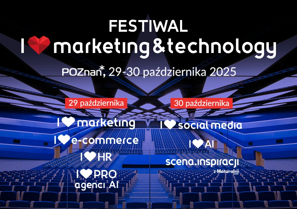 Podczas jubileuszowej, dwudziestej edycji festiwalu I❤️Marketing & Technology organizatorzy przenoszą wydarzenie do stolicy Wielkopolski. 29-30 października 2025 uczestnicy spotkają się na terenie Międzynarodowych Targów Poznańskich, a konkretniej w Poznań Congress Center.