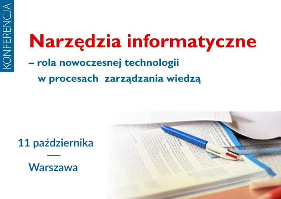 Zapraszamy do udziału w konferencji "Narzędzia Informatyczne - rola nowoczesnej technologii w procesach zarządzania wiedzą", która odbędzie się 11 października w Warszawie.