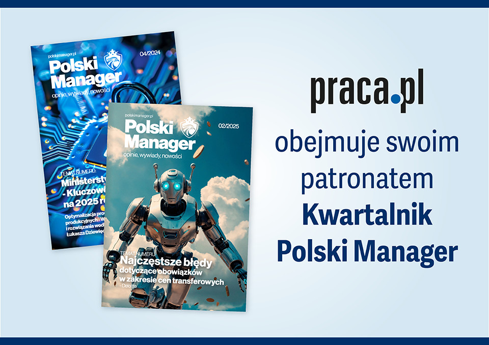 Z dumą ogłaszamy, że Praca.pl objęła strategiczny patronat nad kwartalnikiem oraz portalem „Polski Manager”. To wyjątkowe partnerstwo jest potwierdzeniem naszej misji – wspierania profesjonalistów i przedsiębiorców w dynamicznie zmieniającym się świecie biznesu.