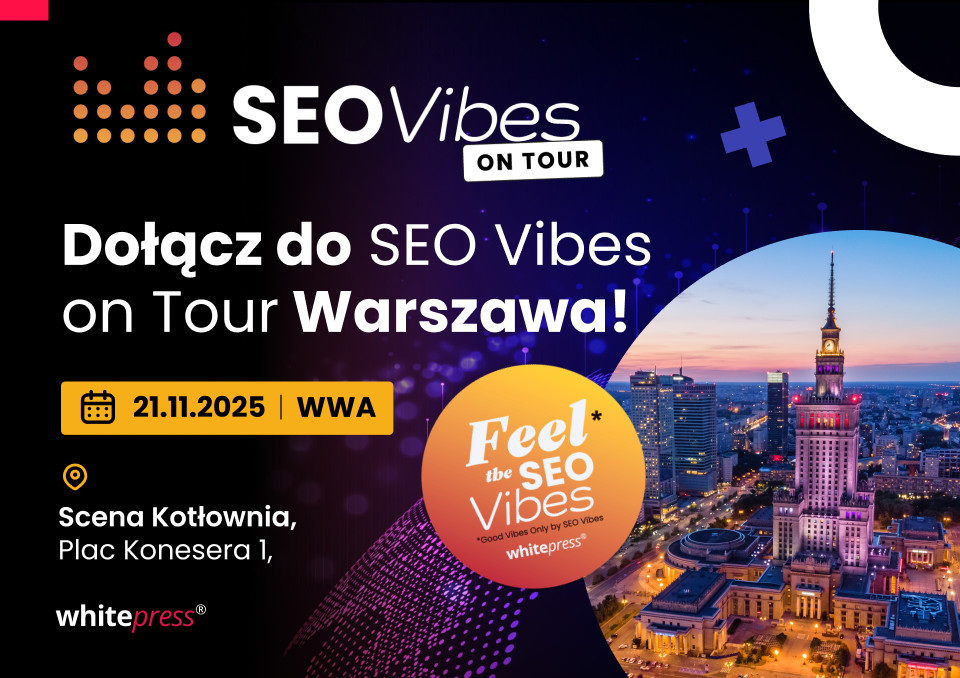 SEO Vibes on Tour, czyli globalny cykl eventów poświęconych SEO organizowany przez WhitePress®, już wkrótce odwiedzi Warszawę! To pierwsza edycja tego wydarzenia w Polsce, stworzona z myślą o specjalistach i pasjonatach pozycjonowania stron. Uczestnicy mogą liczyć na inspirujące prelekcje, wymianę doświadczeń i luźną atmosferę sprzyjającą rozmowom o trendach w branży.