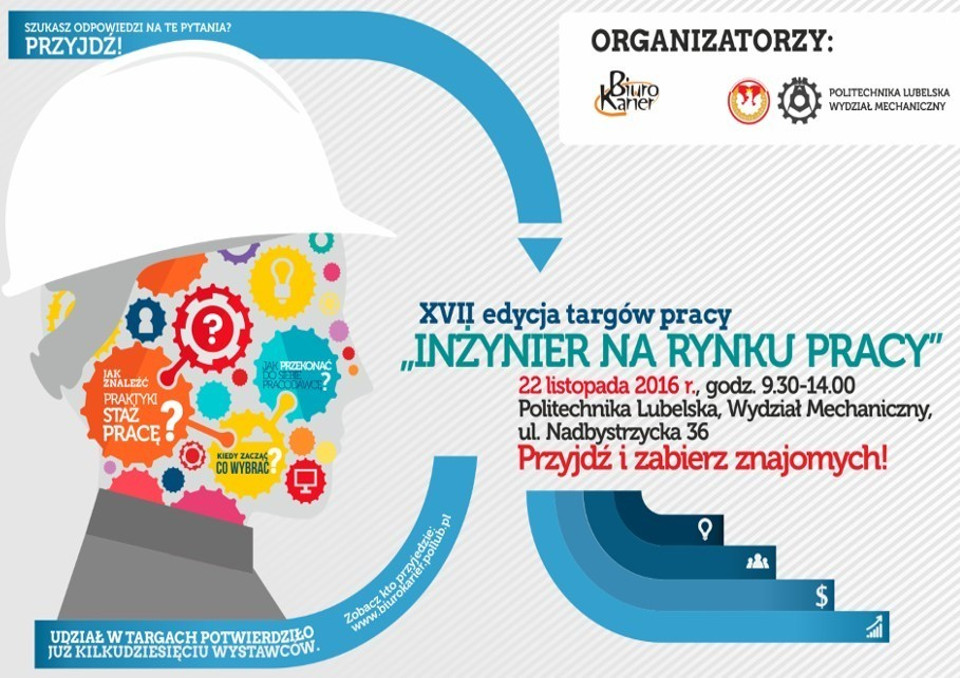 Nie strać okazji, koniecznie zajrzyj 22 listopada na Targi Pracy „Inżynier na rynku pracy”, organizowane przez Biuro Karier Politechniki Lubelskiej.