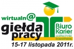 Biuro Karier Politechniki Koszalińskiej oraz Stowarzyszenie Studentów i Absolwentów PK „Millennium” organizatorzy największych Targów Pracy w woj. Zachodniopomorskim organizuje II edycję Wirtualnej Giełdy Pracy, która odbędzie się w dniach 15-17.11.2011 r.