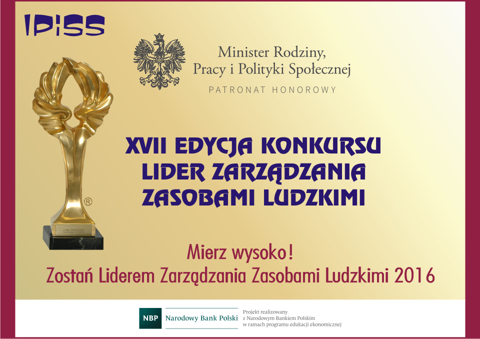Instytut Pracy i Spraw Socjalnych otworzył właśnie XVII edycję Konkursu Lider Zarządzania Zasobami Ludzkimi. Konkurs od lat promuje firmy dążące do stałego podnoszenia jakości kapitału ludzkiego oraz udoskonalania strategii zarządzania nim. Konkurs wspiera od jego pierwszej edycji Narodowy Bank Polski – obecnie w ramach programu edukacji ekonomicznej.