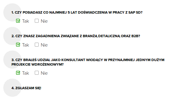 Praca w projektach wdrożeniowych (nie roll outów) jako konsultant wiodący/samodzielny