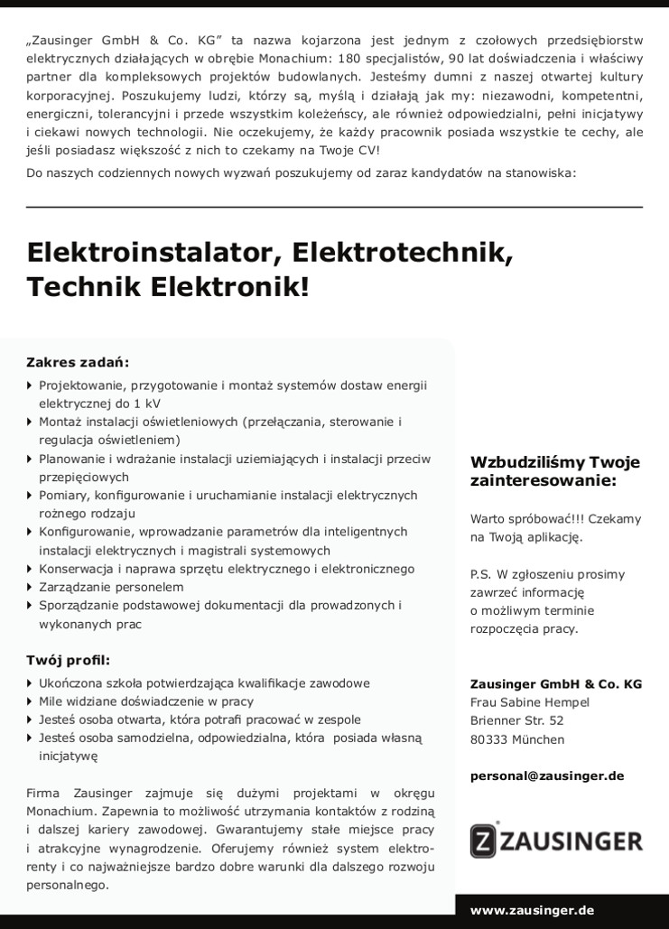 Technik Elektryk (Elektronik / Mechatronik / Elektromonter)