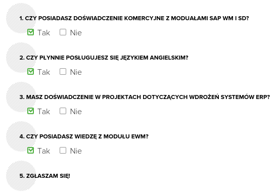 Udział w projektach wdrożeniowych SAP realizowanych dla klientów w USA; Prowadzenie sesji z klientami i warsztatów w celu zbierania wymagań; Doradztwo w zakresie SAP oraz wsparcie presales dla zespołu i klientów; Współpraca przy integracji modułów SAP (MM, SD z FI, PP, RDP)