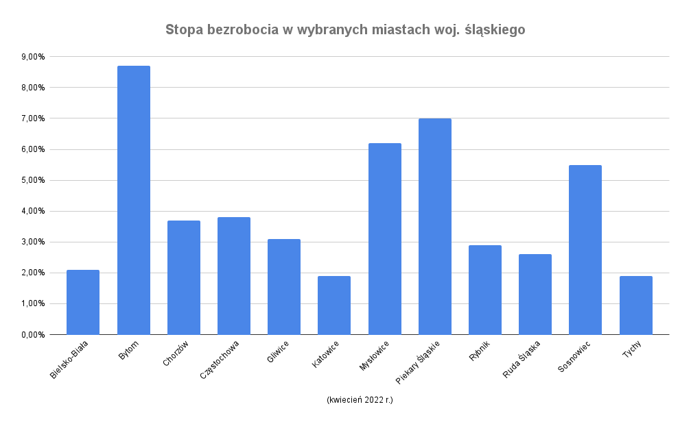 Oferty są łatwo dostępne dla wielu grup zawodowych. O dobrej kondycji tutejszego rynku zatrudnienia świadczą statystyki. Zgodnie z danymi Głównego Urzędu Statystycznego bezrobocie w Katowicach jest rekordowo niskie w skali ogólnokrajowej. Stopa bezrobocia w końcu stycznia 2023 r. była na poziomie zaledwie 1,4%, przy średniej ogólnokrajowej 5,5% oraz wskaźniku wojewódzkim 3,9%. W tym czasie w PUP Katowice pracy szukało około 3 tys. zarejestrowanych bezrobotnych. W Katowicach i okolicy wciąż można mówić o rynku pracy pracownika. Do Katowic przyjeżdżają kandydaci z wielu miejscowości, np. Bielska-Białej, Wrocławia czy Krakowa, a nawet osoby zza granicy.