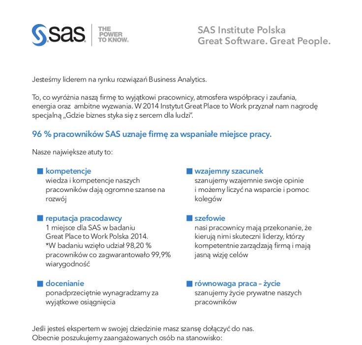 • prowadzenie szkoleń z zakresu technologii SAS