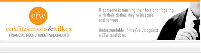 Jako agencja rekrutacyjna Coxfitzsimons&Wilkes| FinancialRecruitment Specialists specjalizuje się w rekrutacji wykwalifikowanych kandydatów dla wiodących firm z branży finansowej. Współpracujemy ze światowym i liderami biznesu, którzy zdecydowali się rozwijać swoją działalność w Polsce i tym samym otworzyć drogę do międzynarodowej kariery zawodowej osobom pasjonującym się finansami i dążącym do pogłębiania wiedzy i umiejętności w tym obszarze.