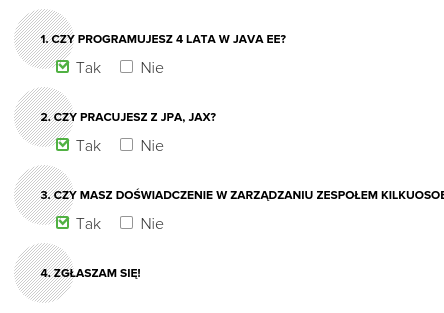 - Praca w zespole programistów Java, PM, architekta, Analityka