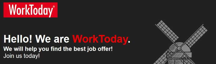 WorkToday zajmuje się rekrutacją i selekcją kandydatów zainteresowanych podjęciem pracy w Holandii. Nasza firma powstała w 2005 roku. Od tego czasu za pośrednictwem WorkToday do pracy w Holandii wyjechały już tysiące zadowolonych Klientów.