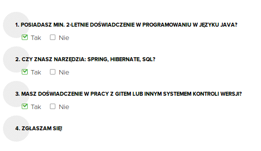 - Możliwość pracy w najnowszych technologiach (Java 8 i AngularJS)