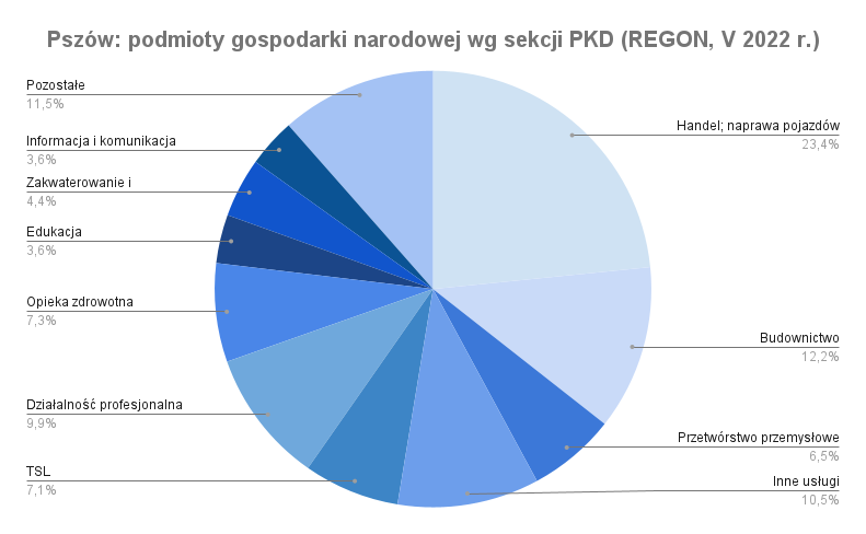 Pszów to nieduży ośrodek gospodarczy. Zgodnie z REGON (maj 2022 r.) funkcjonuje tu 877 podmiotów gospodarki narodowej. Nie ma tu dużych zakładów pracy, a 4 z 7 jednostek średniej wielkości należą do sfery budżetowej. Zatrudnienia można zatem szukać w małych, często rodzinnych firmach.