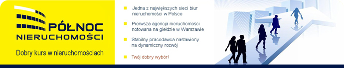 PÓŁNOC Nieruchomości S.A. - właściciel ogólnopolskiej sieci biur nieruchomości to firma, której początki sięgają do 1999r. Spółka z dużym doświadczeniem na rynku nieruchomości, z profesjonalnym zespołem przeszło 200 osób działających w ramach Grupy PÓŁNOC. Dzięki konsekwentnie prowadzonej polityce rozwojowej, staliśmy się jedną z największych firm nieruchomości w kraju. W dniu 5 listopada 2007 roku jako pierwsza agencja nieruchomości w Polsce, zadebiutowaliśmy na giełdzie w Warszawie.